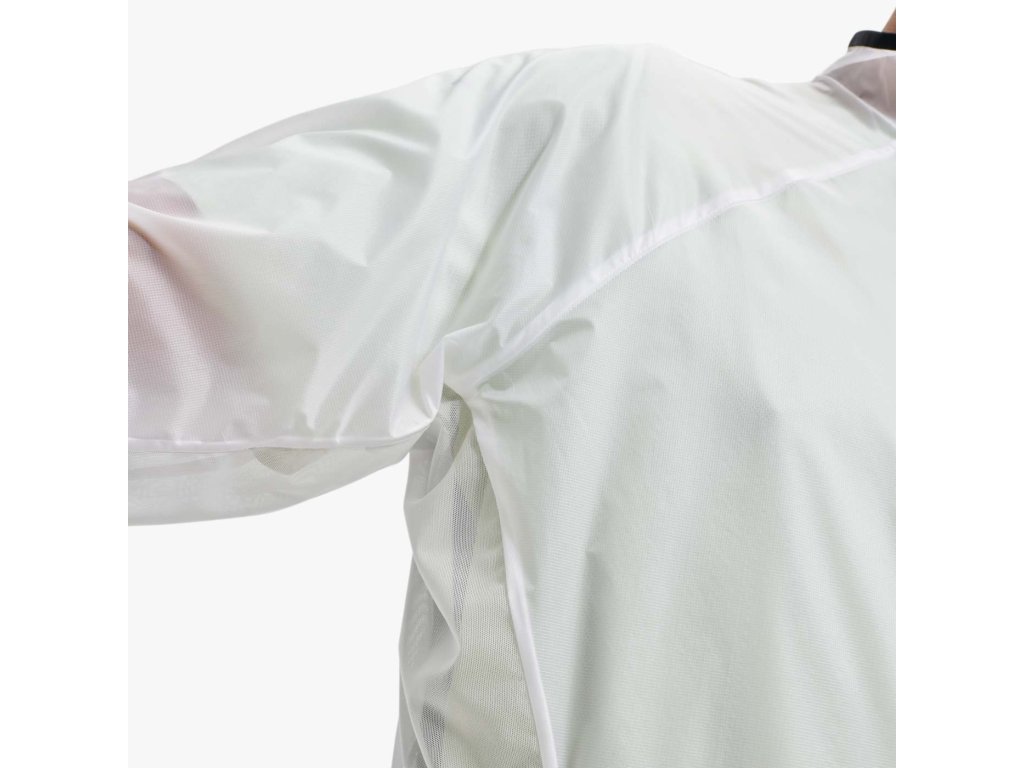 - Jediný dôvod, prečo viete, že máte na sebe túto ľahkú bundu, je ochrana pred vetrom a dažďom. ako? Mini-ripstop, ochranná tkanina, ktorá váži iba 29 g na meter štvorcový ("ľahké" tričká zvyčajne začínajú na 160 g). Nič vás teda nezdržuje – bez ohľadu na počasie.