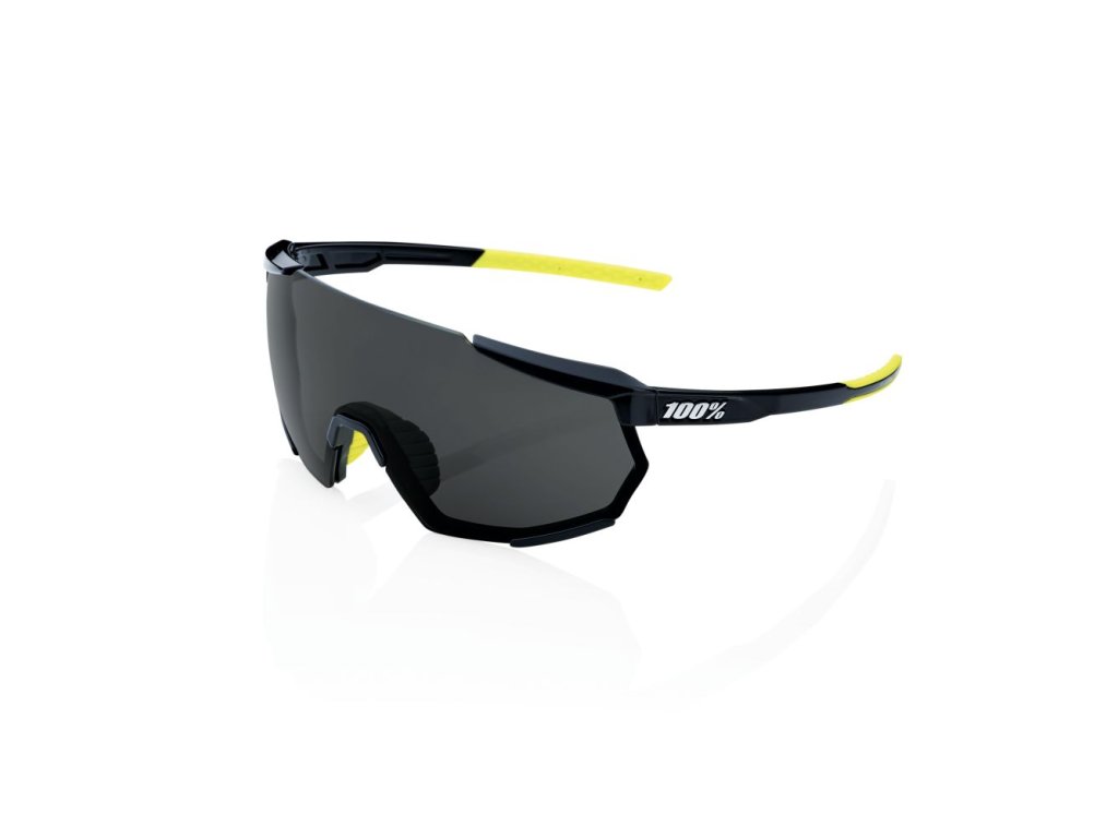 Cyklistické okuliare 100% RACETRAP 3.0 v Gloss Black s klasickými Smoke Lens. Zabezpečte si optimálnu ochranu pred slnkom a jasným pohľadom na trať.