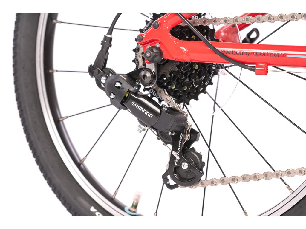 Pohon je riešený osvedčeným systémom Shimano 1x7. Jeden prevodník vpredu a 7-rýchlostná kazeta vzadu ponúkajú dostatočný rozsah pre rodinné výlety aj zdolávanie prvých terénnych vĺn. Radenie (zvyčajne otočné Revoshift) je pre deti intuitívne a ľahko pochopiteľné. Bicykel je doplnený o kvalitné plášte (napr. Kenda alebo Schwalbe), ktoré sú rýchle na asfalte, ale podržia aj na poľnej ceste.
