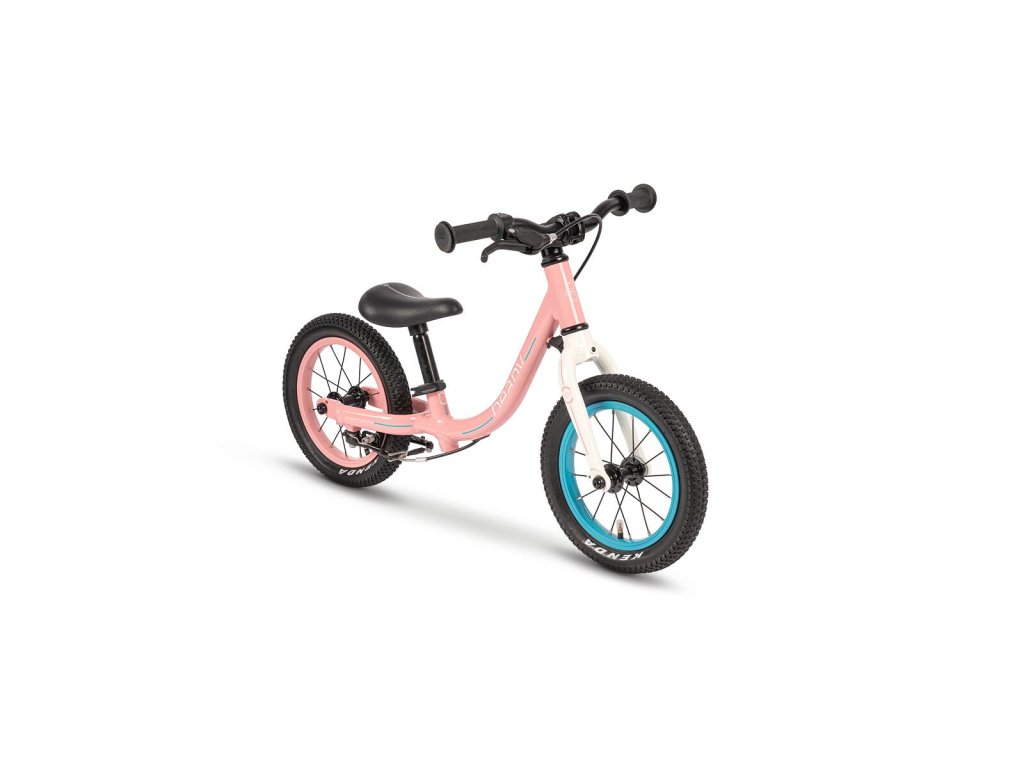 Geometria rámu nie je náhodná. Bola vyvinutá v spolupráci s detskými fyzioterapeutmi, aby zabezpečila zdravý a prirodzený posed dieťaťa. Rám z trikrát zoslabovaného hliníka Alu 6061 má extrémne nízky nástup, čo dodáva malým jazdcom pocit istoty a bezpečia. Sedlo sa dá nastaviť neuveriteľne nízko – minimálna výška je len 27 cm, takže na zem dosiahnu aj tie najmenšie nožičky.