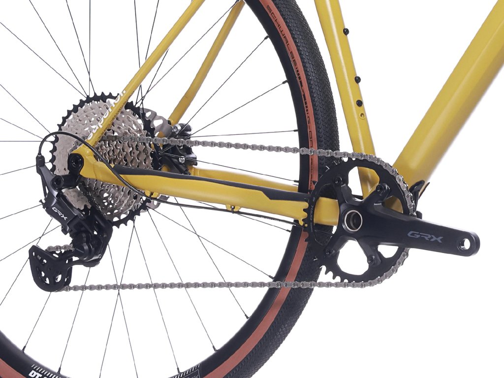 Srdcom pohonu SUPERIOR XR 6.5 GR je špičková gravel sada SHIMANO GRX RX610/RX822 1x12-speed. S prehadzovačom SHIMANO GRX RD-RX822 Shadow Plus a kazetou SHIMANO SLX CS-M7101 10-45T máte k dispozícii široký rozsah prevodov pre akýkoľvek terén – od strmých stúpaní až po rýchle rovinky. Bezpečné zastavenie zaisťujú výkonné hydraulické kotúčové brzdy SHIMANO GRX RX610, ktoré poskytujú spoľahlivý brzdný účinok za každého počasia. Obutie tvoria univerzálne plášte Schwalbe G-One Allround 40-622 pripravené na bezdušové použitie (Tubeless Ready), ktoré ponúkajú optimálnu kombináciu rýchlosti na asfalte a priľnavosti v teréne. Robustné kolesá DT Swiss R500 Disc dopĺňajú celok, čím zaručujú odolnosť a stabilitu.