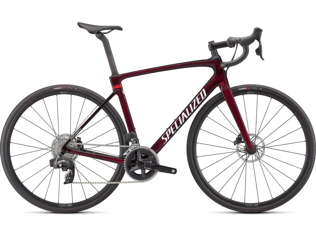 SPECIALIZED Roubaix Comp SRAM Rival eTap AXS Gloss Red Tint Carbon Metallic White Silver  Cestný bicykel