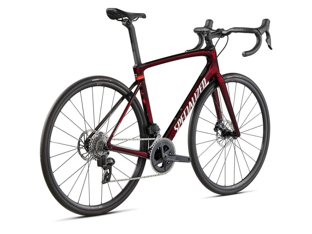 SPECIALIZED Roubaix Comp SRAM Rival eTap AXS Gloss Red Tint Carbon Metallic White Silver Cestný bicykel