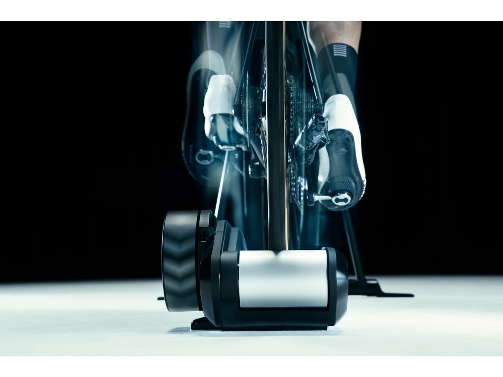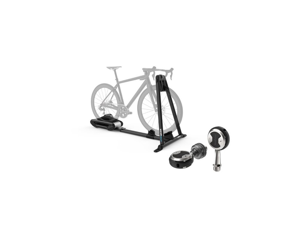 Inteligentný cyklotrenažér WAHOO KICKR ROLLR + POWRLINK ZERO SINGLE-SIDED POWER PEDAL BUNDLE, ktorý kombinuje skutočný pocit z jazdy KICKR s prirodzeným pohybom koliesok, uľahčuje prechod z jazdy vonku na bicyklovanie v interiéri. Pedále v hodnote €649,99 započítané v cene.