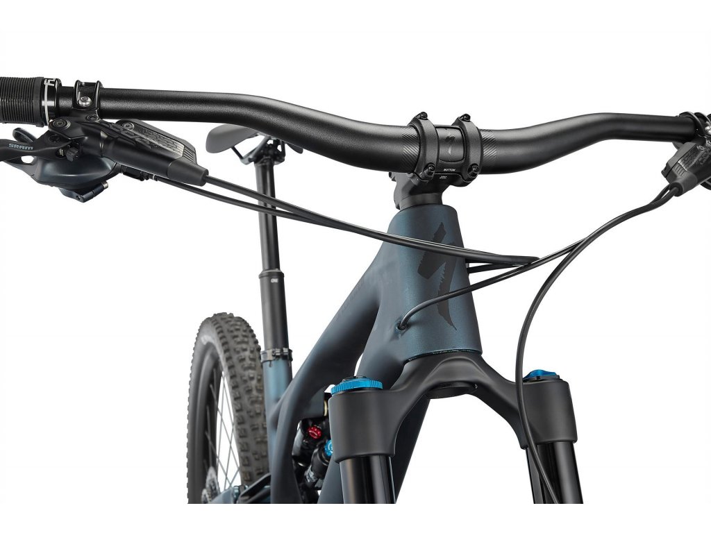 | Rám: | FACT 11m carbon chassis and rear-end, asymmetrical design, 29 Trail Geometry, SWAT™ Door integration, head tube angle adjustment, horst pivot BB adjustment, threaded BB, fully enclosed internal cable routing, 12x148mm dropouts, sealed cartridge bearing pivots, replaceable derailleur hanger, 150mm of travel |