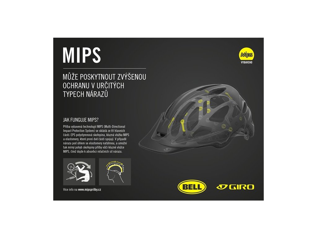 MIPS ( Multi-Directional Impact Protection System) poskytuje zvýšenou ochranu proti působení rotačních sil na hlavu. Více na www.MIPSprilby.cz