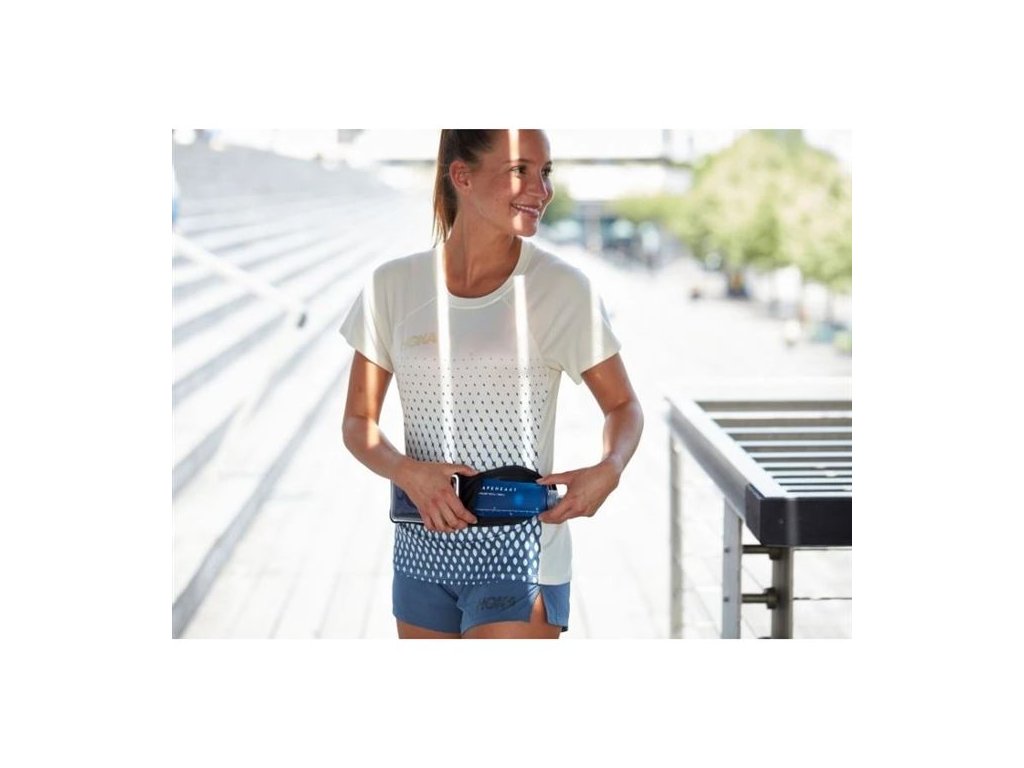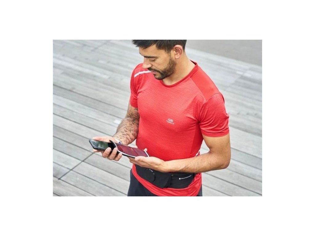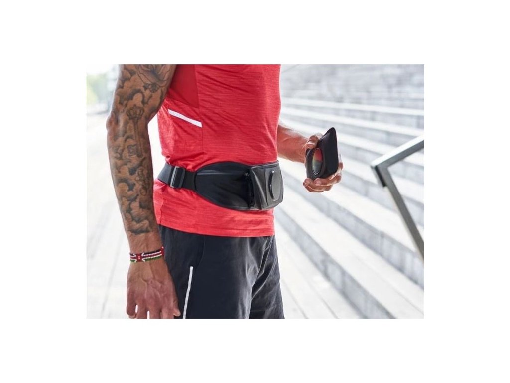 Moderný bežecký pás s puzdrom na telefón, ktorý sa uchytáva na brucho, takže máte o svojom telefóne neustály prehľad. Sada je dostupná v 3 veľkostiach puzdra podľa veľkosti telefónu (M, XL a XL+). Puzdro na telefón je vodeodolné a má vstup na slúchadlá. Pás je vyrobený z neoprénu v jednej nastaviteľnej veľkosti pre všetkých bežcov (XXS - XXL), má 2 bočné vrecká na drobnosti (vrátane klipu na kľúče) a do centrálneho vrecka je možné vložiť 2 Soft Flasky (mäkké fľaše na pitie; možno samostatne dokúpiť). Telefón je možné ľahko ovládať aj v puzdre, dotykový displej funguje aj cez kryciu fóliu.