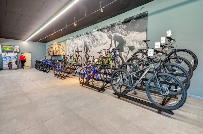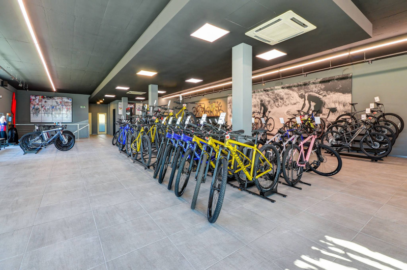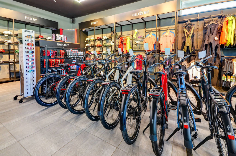 500m2 výstavno - predajnej plochy, kde si prídu na svoje všetci vášniví cyklisti - od špecialistov na downhill/freeride, cez nadšencov MTB cyklistiky, či „cestných pirátov“. V portfóliu sa bude nachádzať široká škála doplnkov, príslušenstva a cyklo oblečenia.