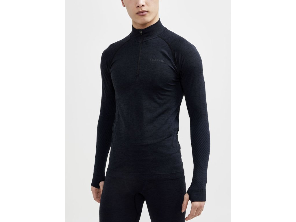 Pánske funkčné tričko CRAFT CORE Dry Active Comfort so stojačikom na zips je určené na širokú škálu športových aktivít v mierne chladnom až chladnom počasí. Vďaka módnemu, decentnému dizajnu je tričko vhodné aj na bežné nosenie.
