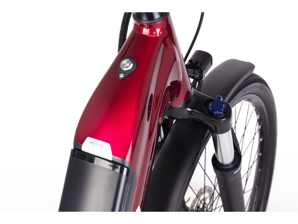 Dámsky mestský elektrobicykel určený na každodenný presun po meste, či už sa jedná o cestu do práce alebo presun za kamarátmi do kaviarne. Bicykel je pripravený aj na prechod ľahkým terénom. Kvalitné robustné plášte WTB Horizon o šírke 47 si hravo poradia s rozbitou mestskou dlažbou, obrubníkmi a inými nástrahami mesta. Pohodlné sedlo a výškovo nastaviteľný predstavec, Metric predurčuje na to, aby sa z neho stal váš nenahraditeľný mestský spoločník. Súčasťou výbavy je kompletné osvetlenie ovládané priamo z riadidiel, integrované blatníky, zadný minimalistický nosič a kompaktný stojan.